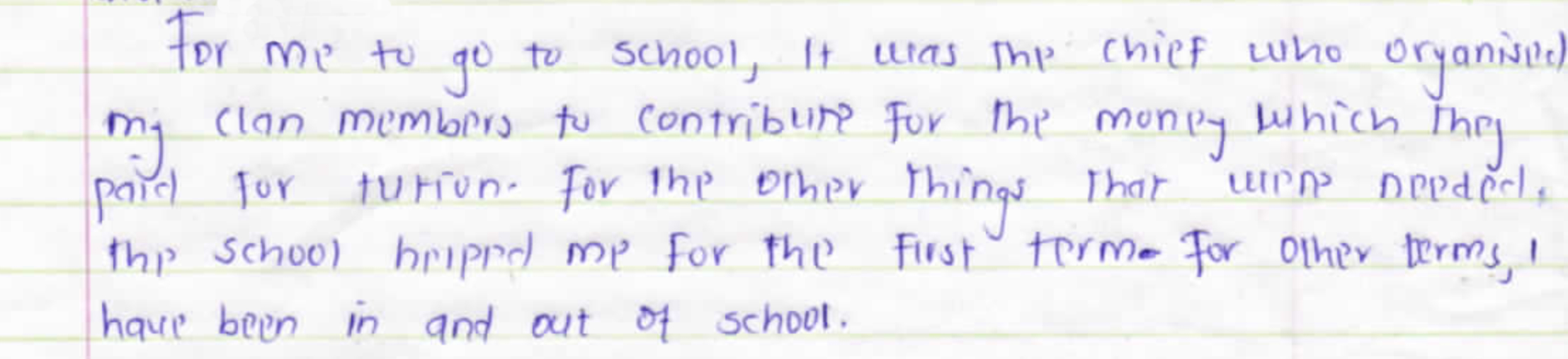 family or tribe will pool resources to educate a boy. We provide scholarships to the girls in the villages where our